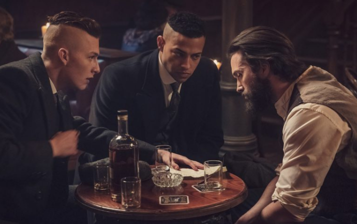 Harry Kirton (Finn Shelby), Daryl McCormack (Isiah) and Emmett J Scanlan (Billy Grade) in ‘Peaky Blinders’ | Series Five (BBC One) | Episode 02 |