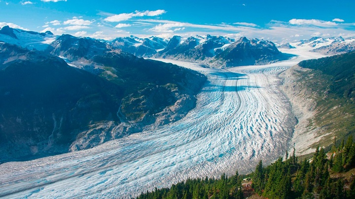 This September 2017 photo provided by researcher Brian Menounos shows the Klinaklini glacier in British Columbia, Canada. |