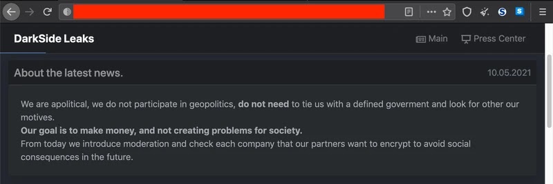 According to New York Times cybersecurity reporter Nicole Perlroth, Darkside is not necessarily linked to a specific nation-state; But it tends to avoid targets whose systems operate in Russian and Eastern European languages. Bloomberg also reported that the group is known to speak Russian.